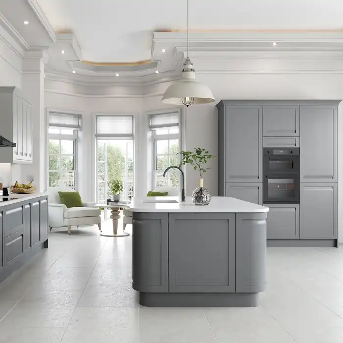 Grantham is a real wood (Ash) slim shaker door with an integrated handle (within the centre panel). The door is constructed from a 21mm solid ash frame, and all doors have a veneered centre panel.